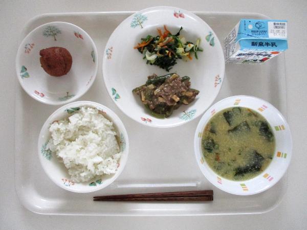 今日の献立は、赤阪小学校6年生の児童が考えてくれました。チンジャオロースは給食初登場です。楽しみにして下さいね。