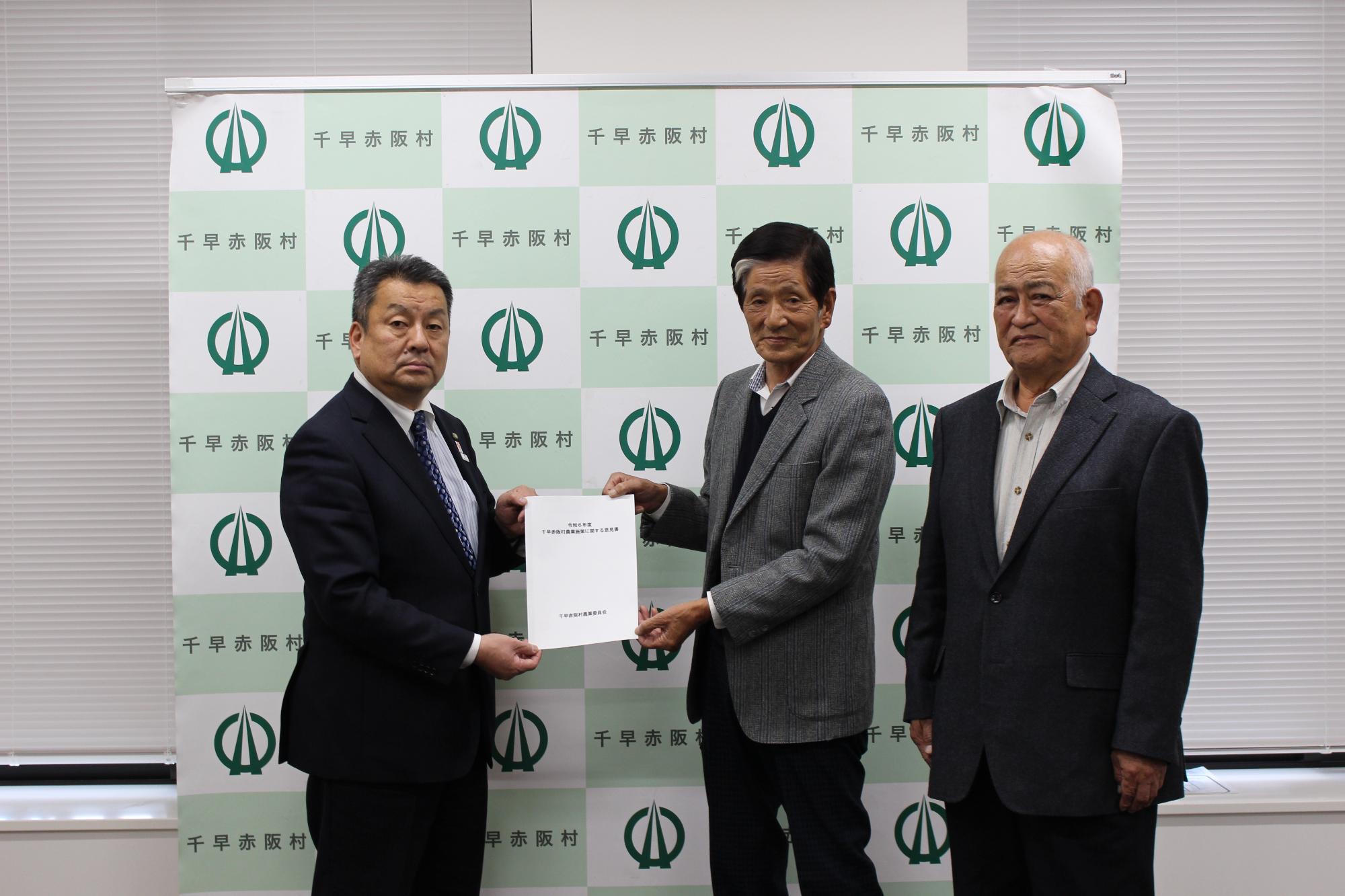令和6年12月4日、千早赤阪村農業委員会は農業委員会等に関する法律第38条第1項の規定に基づき、千早赤阪村長へ「令和6年度千早赤阪村農業施策に関する意見書」を提出しました。