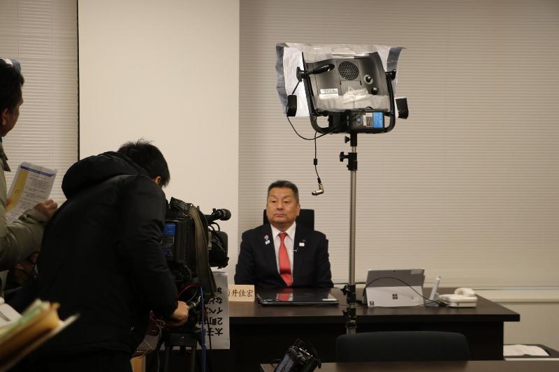 撮影当日は、風が強い寒空の中、特別委員会の鈴木委員長(富田林市、大阪狭山市及び南河内郡選出議員)および西元副委員長に、アナウンサーの久野静香さんが「人口減少と高齢化が急激に進む中で、基礎自治機能が維持できなくなる危機的な状況や自分が住む市町村が将来どうなっていくのか。」など、インタビューされました。久野静香さんは、「まちの将来のために自分の力は活かせないのか、もっと関心を持たなくてはいけないなと感じました。」と感想を述べられました。